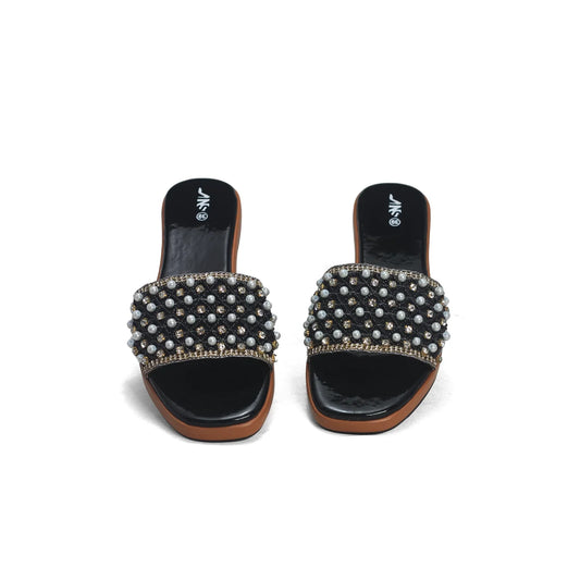 Pearl & Rhinestone Embellished Slides - Elegant Beaded Flat Sandals | Nawabi Shoes BD