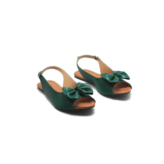 Elegant Green Bow Slingback Women’s Flats | Stylish & Comfortable Peep-Toe Shoes